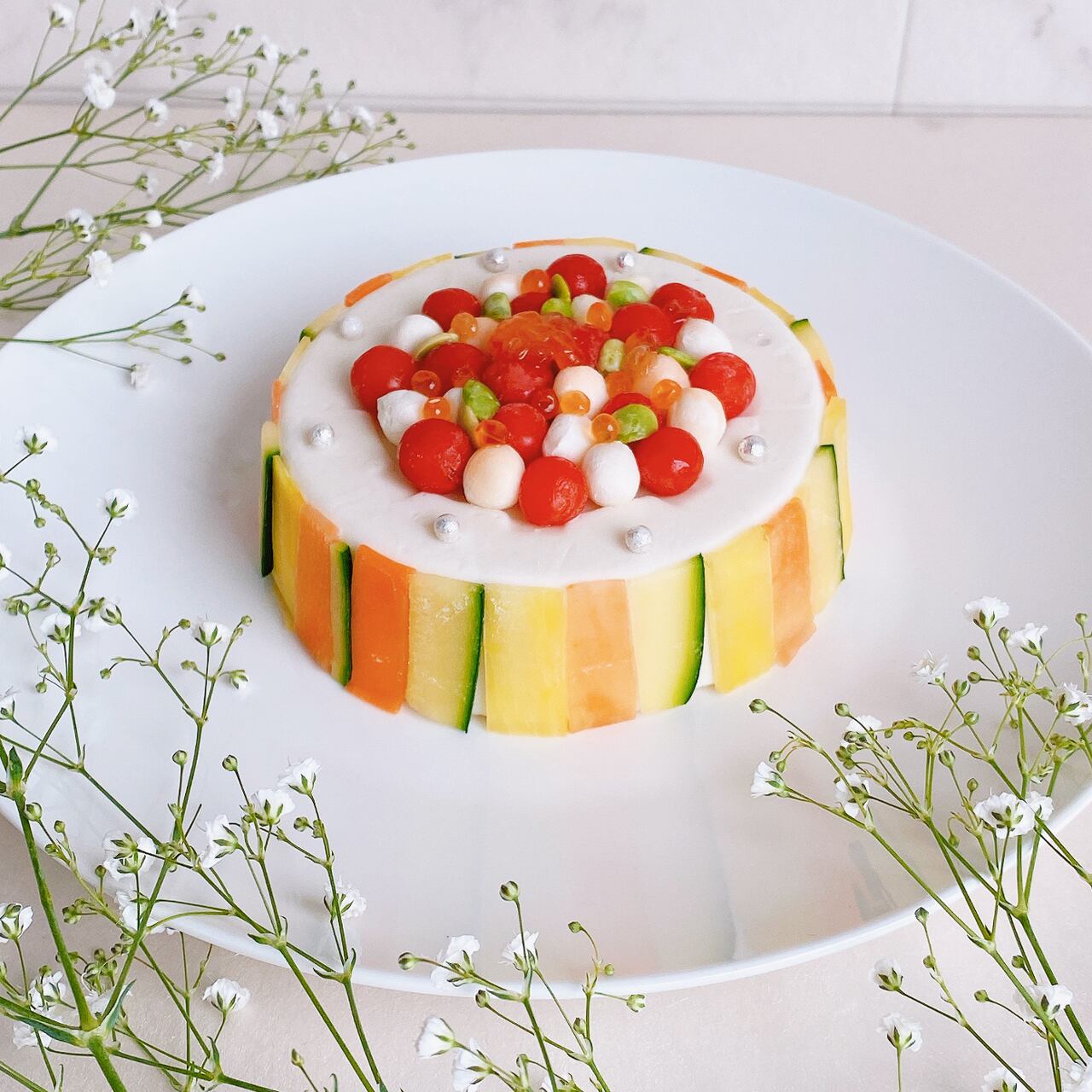 まるでホワイトチョコケーキのような、クリームパスタケーキ『花咲くフェンスのお城』。