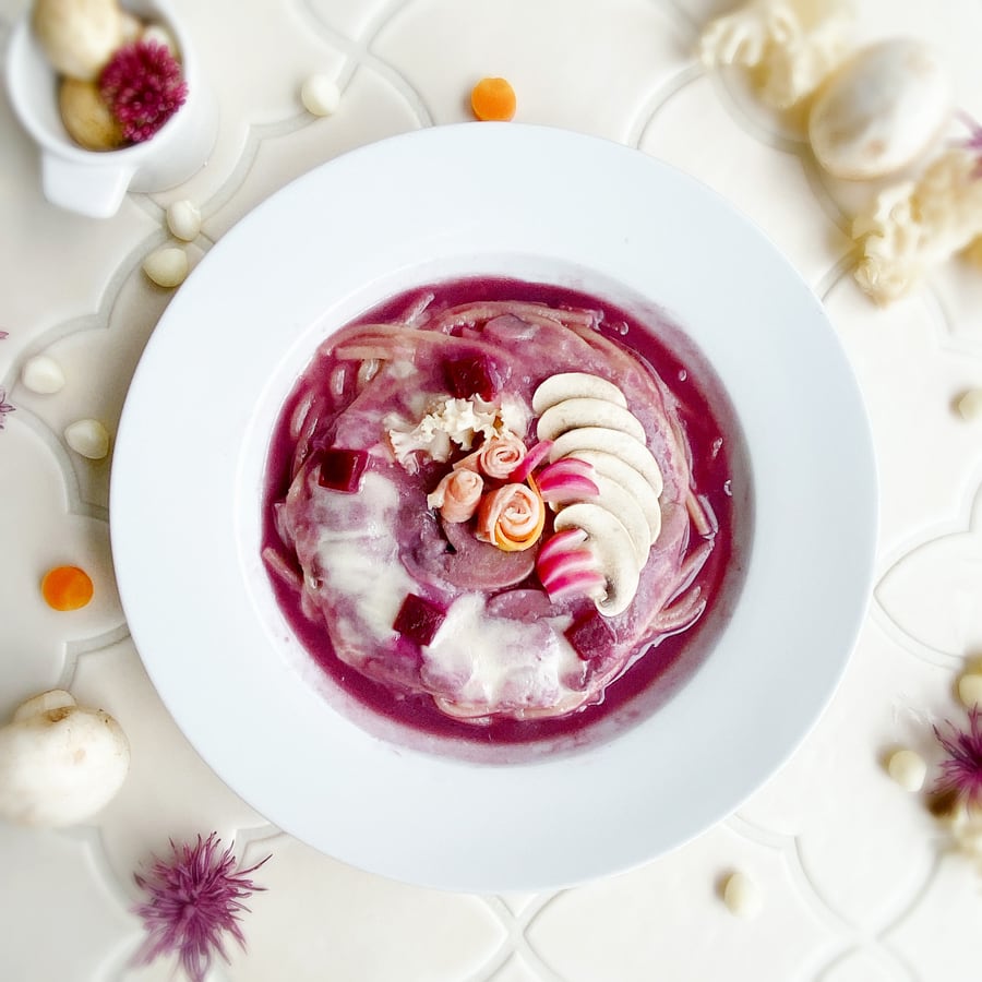 紫芋の鮮やかなカラーと、なめらかクリーミーなソースが魅力♪